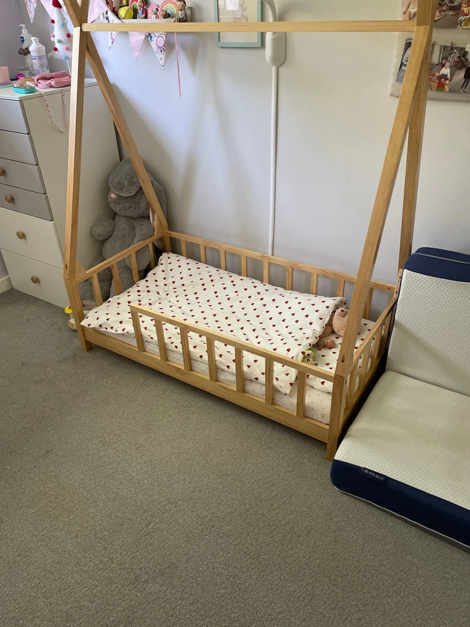 With a charming tent-like shape crafted from high-quality pine wood, it appeals